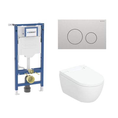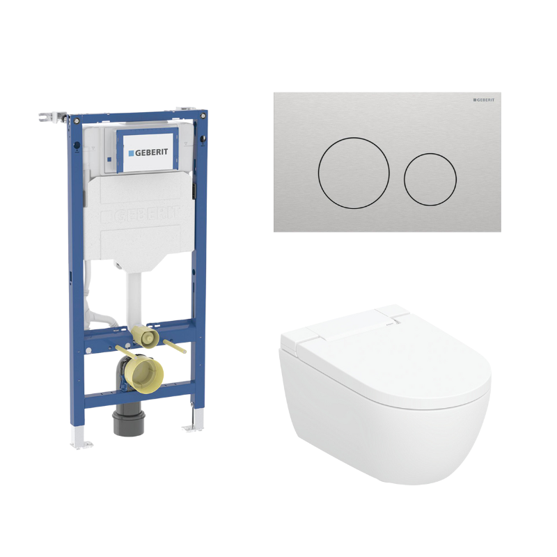 Geberit Duofix 112 cm toiletpakke inkl. Geberit AquaClean Alba douchetoilet væghængt, Geberit Sigma40 round, børstet stål