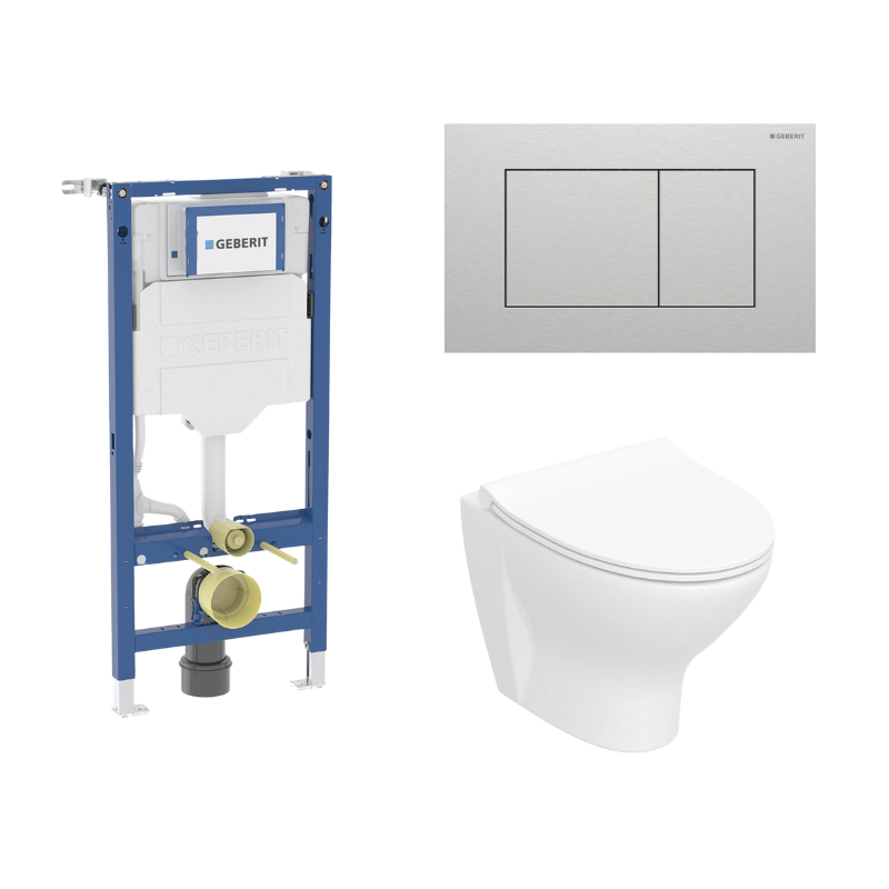 Geberit Duofix 112 cm toiletpakke inkl. Ifö Spira Style væghængt toilet + toiletsæde, Geberit Sigma40 square, børstet stål