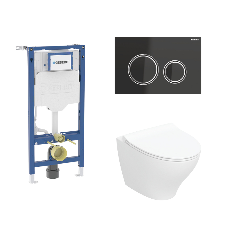 Denne Geberit Duofix toiletpakke indeholder alt, hvad du behøver til en komplet installation af et væghængt toilet. Pakken inkluderer Geberit Duofix-elementet på 112 cm, et Ifö Spira Style væghængt toilet med toiletsæde, og den elegante Geberit Sigma50 round betjeningsplade i sort/krom. Duofix-elementet er en driftssikker og støjsvag løsning, designet til nem montage i lette vægkonstruktioner og fritstående installationer.