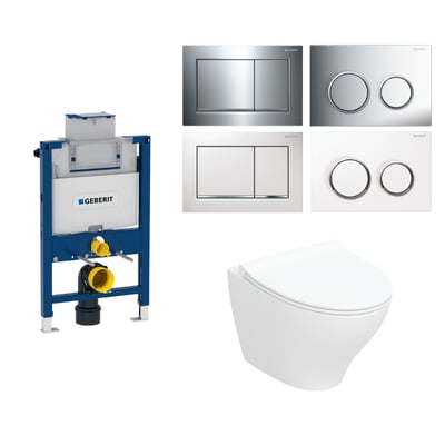 Denne komplette toiletpakke fra Geberit er designet til det moderne badeværelse og kombinerer en stilfuld indbygningscisterne med et elegant væghængt toilet.