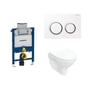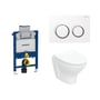 - Komplet løsning: Indeholder både væghængt toilet, indbygningscisterne, toiletsæde og trykknap.