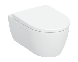 Geberit iCon væghængt toilet i kompakt design med TurboFlush skylleteknik og rengøringsvenlig KeraTect overflade. Inkl. soft close og quick-release toiletsæde.