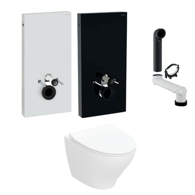 Geberit Monlith toiletpakke inkl. Geberit Monolith cisternemodul 101 cm, frontpanel af sort glas, Ifö Spira Modern væghængt toilet inkl. toiletsæde, variabel afløbsbøjning