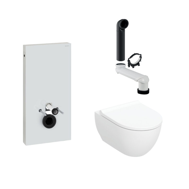 - Indeholder: Geberit cisterne, toiletskål, variabel afløbsbøjning