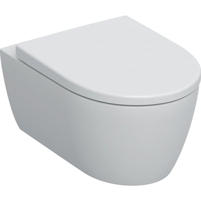 Komplet Geberit iCon væghængt toiletsæt i mat hvid med soft close toiletsæde og skjult montering. Rimfree design for nem rengøring.