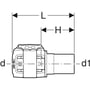 Geberit FlowFit overgang til Geberit Mapress, med nippelende: CuSn4Zn2PS, d=20mm, d1=18mm.