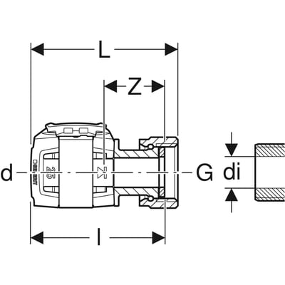 Geberit FlowFit overgang med omløber: CuZn21Si3P, d=40 mm, di=27 mm, G=1 1/4. Fremstillet af blyfri siliciumbronze.