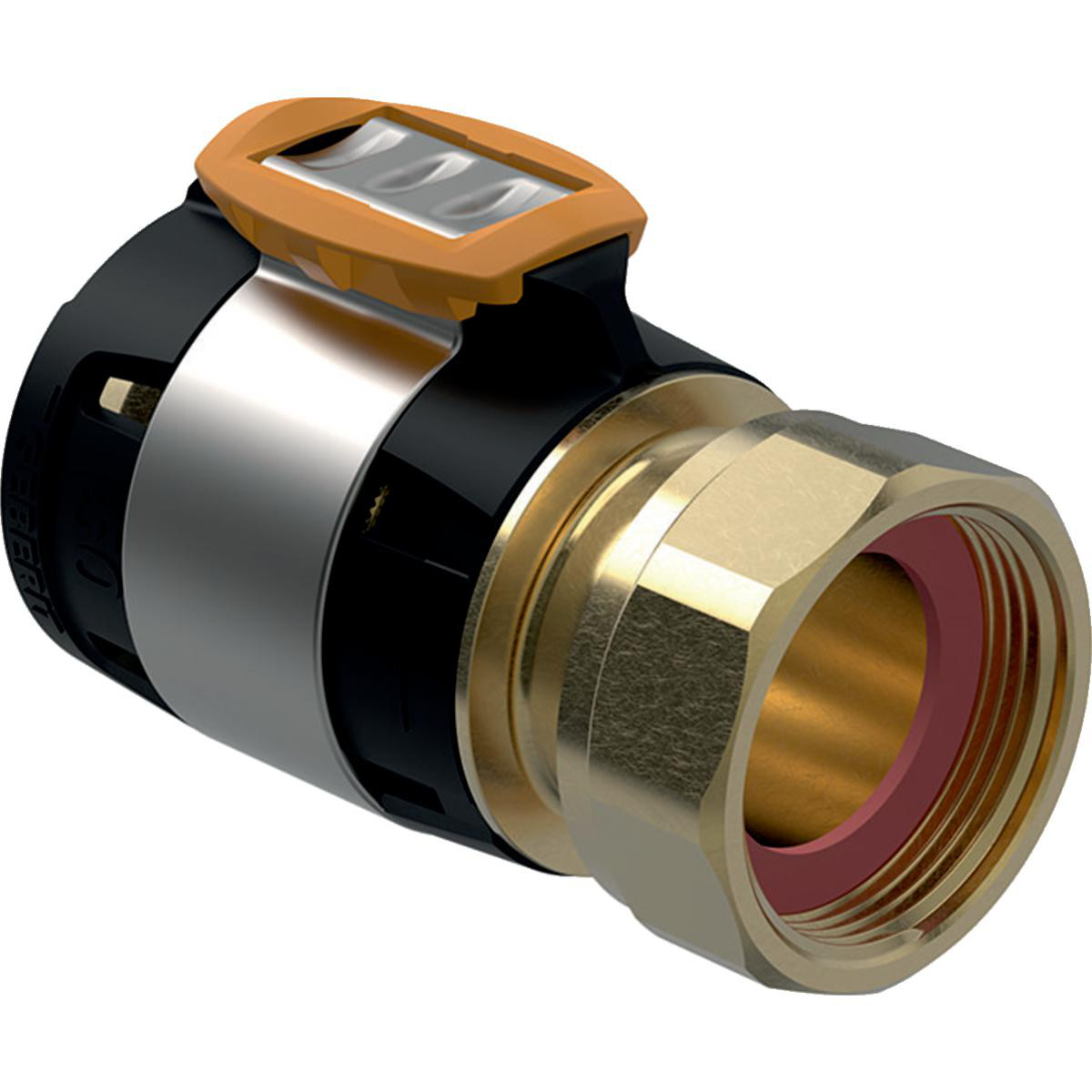 Geberit FlowFit overgang med omløber udført i blyfri siliciumbronze (CuZn21Si3P). Denne overgang er ideel til drikkevandsinstallationer.