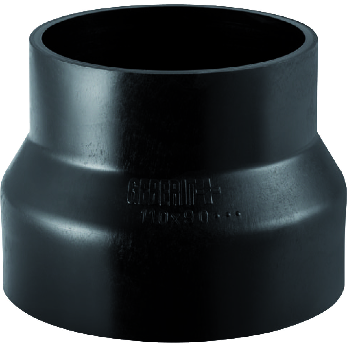 Denne PE-HD reduktion fra Geberit er designet til afløbssystemer og er UV-bestandig, hvilket sikrer lang holdbarhed selv under sollys.