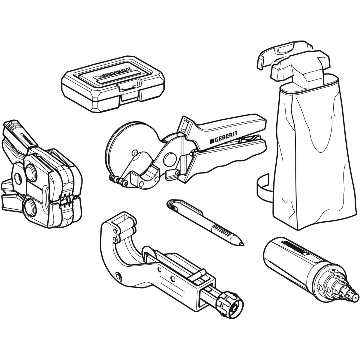 FlowFit pressekæbesæt fra Geberit. Størrelser: d=16 / 20 / 25 / 32 / 40mm. Vedligeholdelsesfri og kan betjenes med én hånd. Forzinket og egnet til funktionstest med PowerTest.