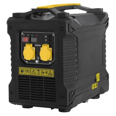 Inverter generator 2000W (SCHUKO) 79.8CC. Med 4-takts motor, 95 blyfri benzin, OHV, enkeltcylinder og luftkølet. Forbrug ved fuld belastning er 1.6l/t. Kontinuerlig driftstid er 2.6t ved fuld belastning. 2xAC udtag, varsel for lav olieindhold. Fase er med ren sinusbølge. Outputindikator og overbelastningsadvarsel. Med rekyl start. Leveres med tændrørsnøgle, skruetrækker, tragt og værktøjspose.