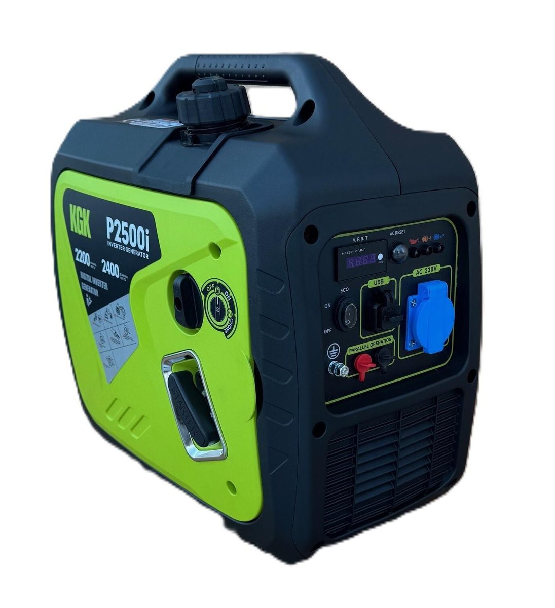 KGK P-2500i inverter generator er en ny, opgraderet model, der tilbyder lavere vægt, større tankkapacitet og forbedret ydelse. Med en vægt på kun 19 kg er den yderst transportabel og samtidig lydsvag.