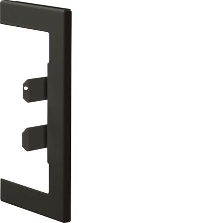 Gennemføringsflange til BR65130 kanaler. Dækker 7 mm ind over bund og låg. Materiale: stål. Farve: RAL 9011. Halogenfri.