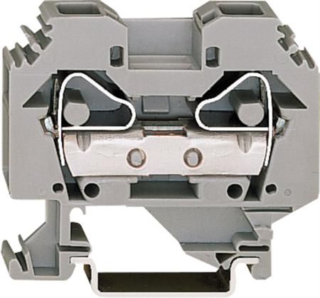Denne 2-leder gennemgangsklemme er designet til TS 35 montageskinner og har sidepåskrift for nem identifikation.