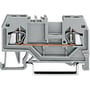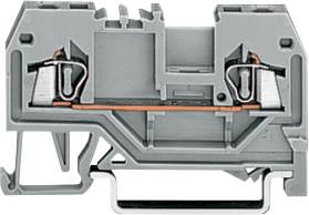2-leder-gennemgangsklemme med midterpåskrift, TS 35, front-ledningsføring og CAGE CLAMP-tilslutning i horisontal udførelse.