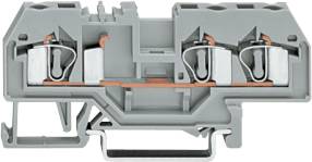 3-leder gennemgangsklemme med midterpåskrift, TS 35, front-ledningsføring og CAGE CLAMP-tilslutning i horisontal udførelse.