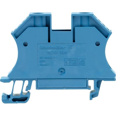 Robust gennemgangsklemme WDU 16N BL Compact i blå, med skruetilslutning og en størrelse på 16mm², ideel til DIN-skinne TS 35.