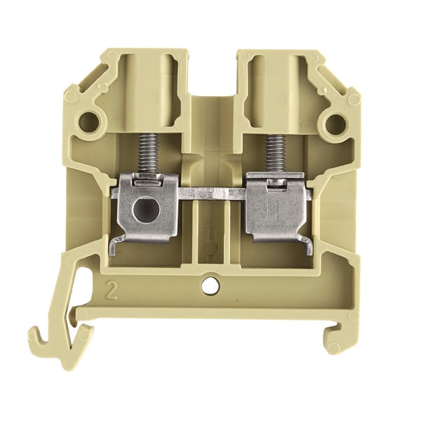 Gennemgangsklemme SAK 4/35 PA med skruetilslutning, designet til 4 mm² ledere og montering på TS 35 DIN-skinne. Leveres i en neutral beige farve.