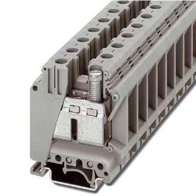 Denne gennemgangsklemme fra Phoenix Contact er designet til skruetilslutning og kan håndtere et tværsnit på 0,75 mm² til 50 mm² og AWG 18 til 1/0.