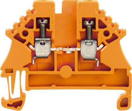 Orange gennemgangsklemme WDU 1,5 fra Weidmüller. Skrue/skrue.