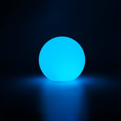 Fleksibel RGBW LED kugle med ø8 cm diameter. Dæmpbar med fjernbetjening og IP66-klassificeret.