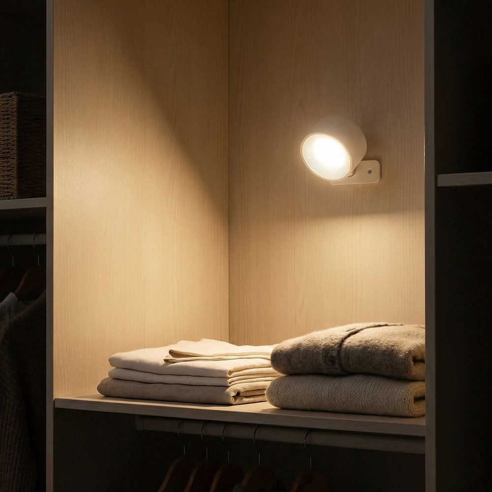 Genopladelig og roterbar væglampe med 3-i-1 CCT-funktion. Perfekt til både indendørs og udendørs brug med IP54-klassificering.