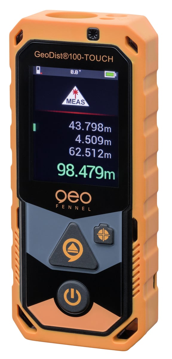 Præcis afstandsmåler med 100 m rækkevidde og ± 2 mm nøjagtighed. IP 65-klassificeret, stødsikker, kamera med farvedisplay og berøringsskærm. Bluetooth og GeoDist Connect app.