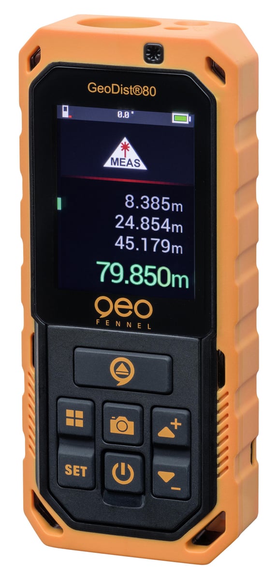 Denne Geo-Fennel afstandsmåler GeoDist 80 har et måleområde på 80 m og en målenøjagtighed på ± 2 mm. Den er IP 65-klassificeret og har et stødsikkert hus. Udstyret med kamera med zoom og pointfinder samt farvedisplay.