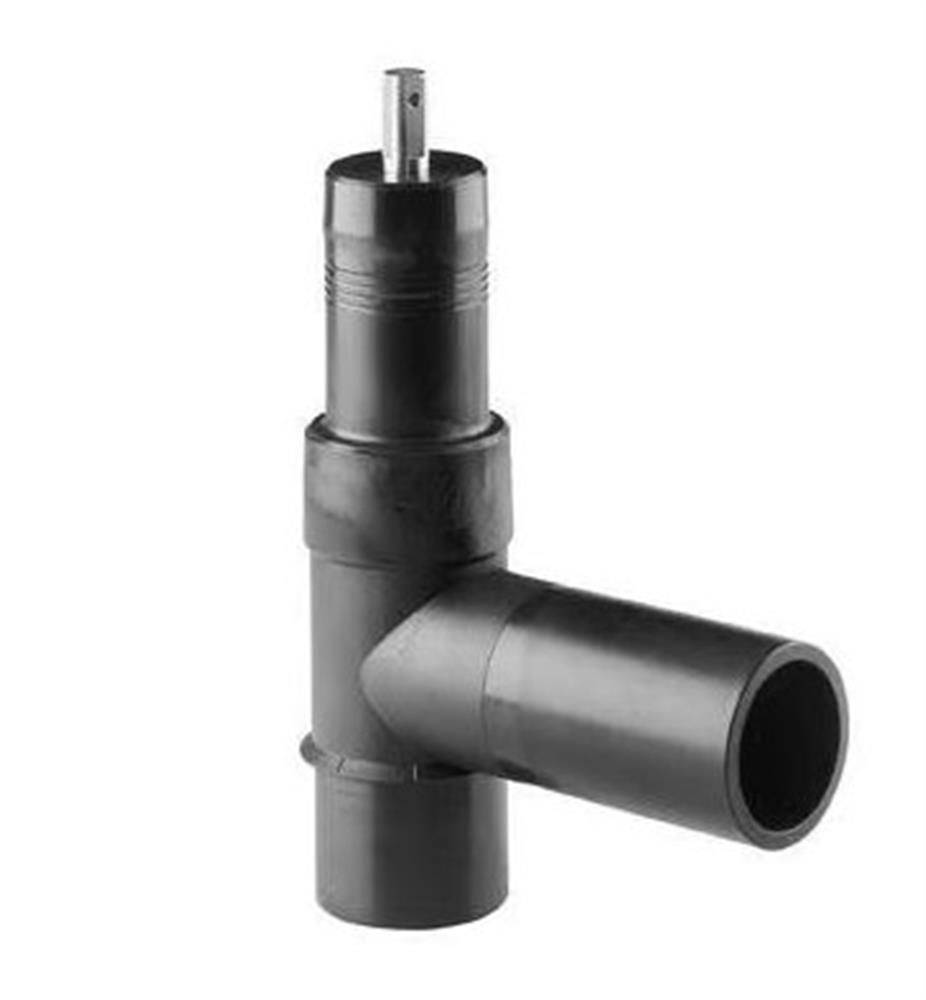ELGEF Plus topanboringsventil til anboring af rør under tryk, med indbygget bor og spindel SW14. Fremstillet i PE100, SDR11. Garniture leveres separat.