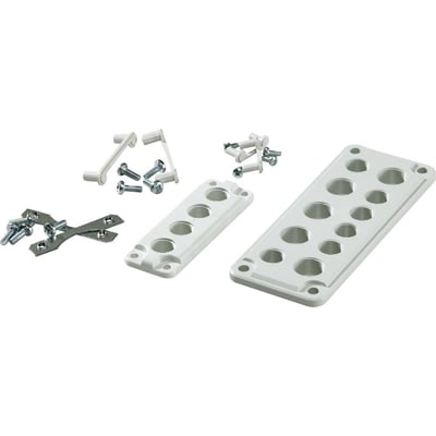 Komplet gevindflange i polycarbonat (PC) til STR.2, med 12xM20 gevind, inkl. skruer og pakning. Måler 85 x 216 mm og er grå.