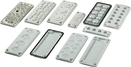 Vægskab gevindflange til EK polycarbonat str. 2 for 280mm kasseside uden skruer, 6 x M20 + 5 x M25.
