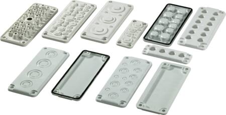 Gevindflange i polycarbonat til EK vægskab, str. 2, for 280mm kasseside. Leveres uden skruer med 2 x M16, 3 x M20, 2 x M25 og 2 x M32.