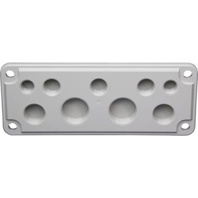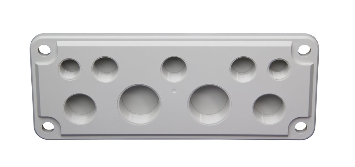 Gevindflange i polycarbonat, str. 2, med gevind til 2xM16, 3xM20, 2xM25 og 2xM32. Inkluderer skruer og pakning.