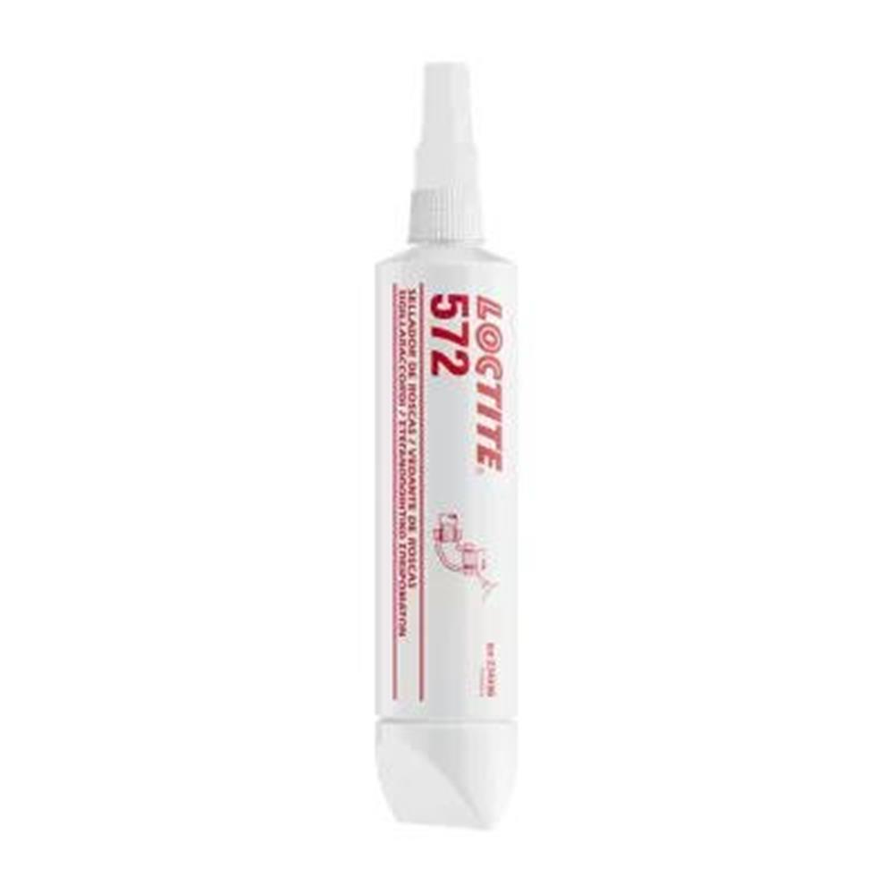 Loctite 572 er en middelstærk, hvid til gullighvid gevindtætning til metalrør og -fittinger. Velegnet til grove gevind.