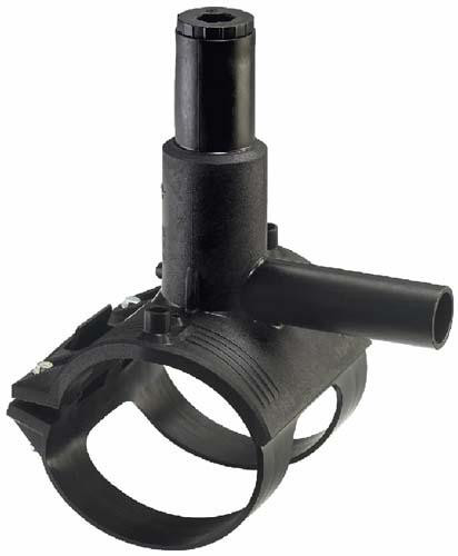 Elgef Plus anboringsbøjle i monoblok version, fremstillet i PE100. Anvendes til anboring af rør under tryk, til både gas (maks. 10 bar) og vand (maks. 16 bar).