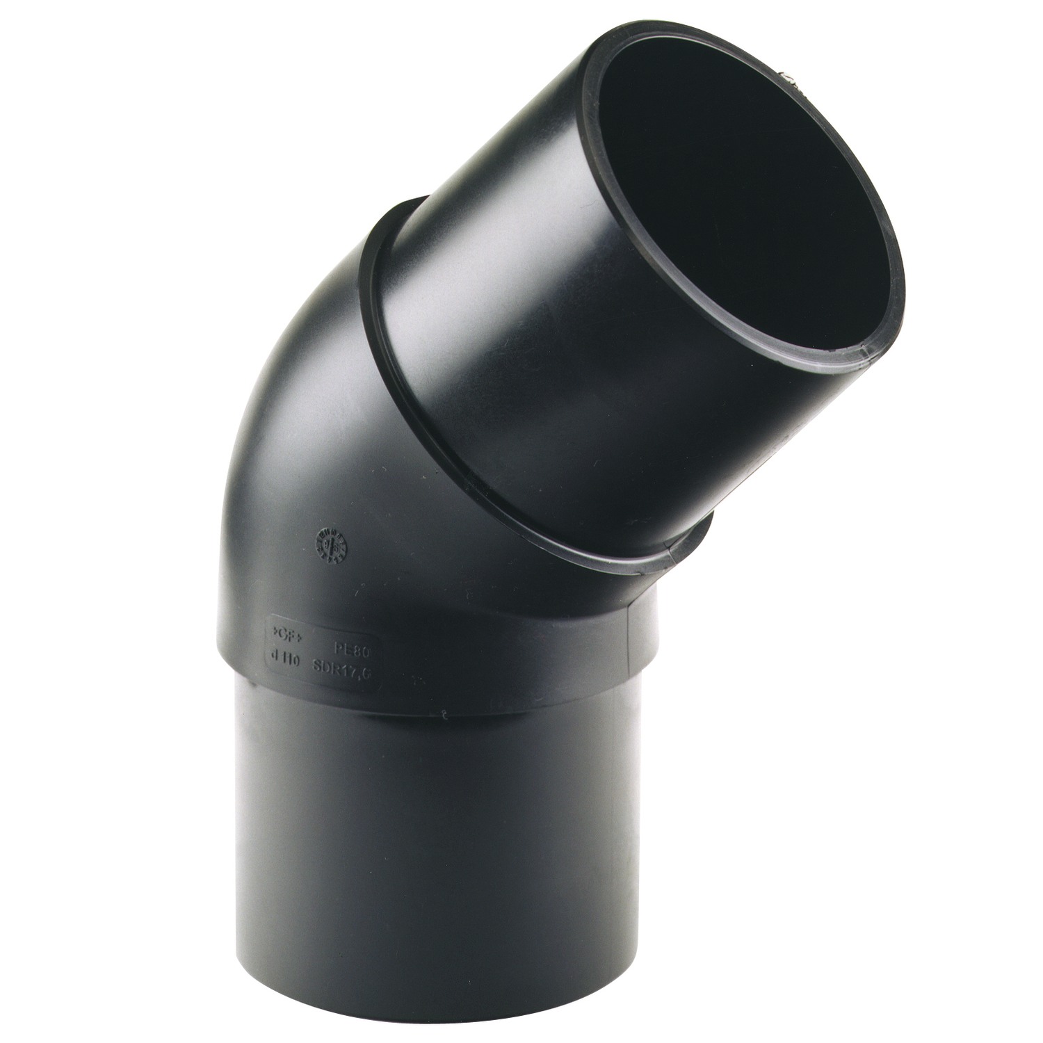PE-svejsevinkel med spidsende til stuk-/elsvejsning giver en nem og sikker forbindelse. Vinklen kan anvendes til både gas (maks. 10 bar) og vand (maks. 16 bar). Den er fremstillet i PE100 SDR11.