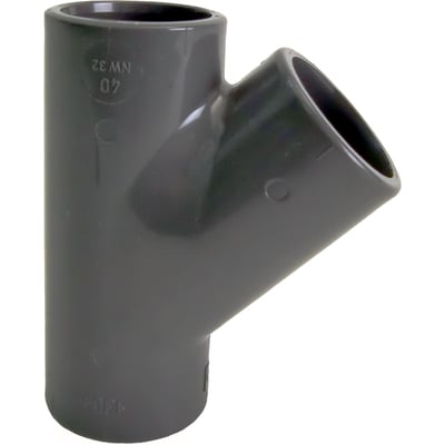 +GF+ tee 45°, 50 mm. Fremstillet af holdbart materiale for lang levetid. Ideel til VVS-installationer.