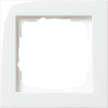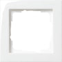 Gira 1-modul ramme E2 i blank hvid. Rammen er splintersikker og kan, med et tætningssæt, installeres som vandbeskyttet IP44.