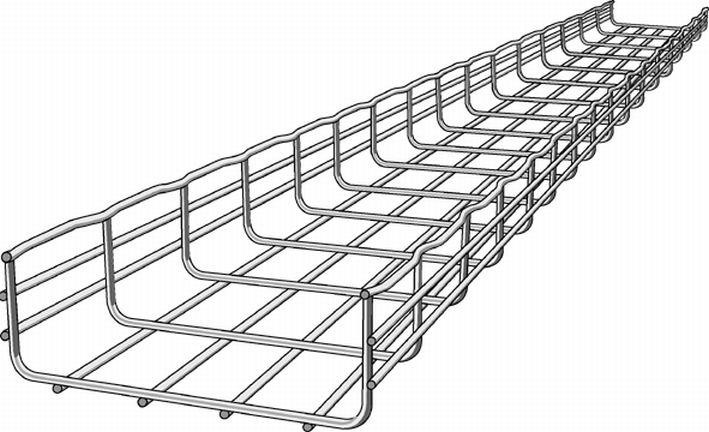 Varmgalvaniseret gitterbakke med en kanthøjde på 105 mm og en bredde på 200 mm.
