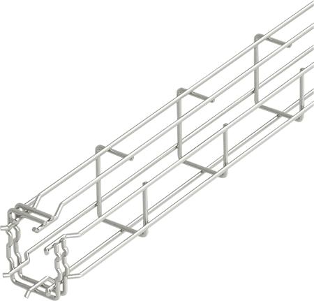 Gitterbakke i G-form af punktsvejset ståltråd med forskellige sidehøjder og bredder. Direkte montering på væg og loft er mulig. Informationer om belastning for de forskellige lægningstyper gives på forespørgsel.