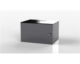 Dørrammen er lakeret i RAL9005 sort, hvilket sikrer en holdbar og æstetisk finish. Folien på glasset giver et diskret udseende og beskytter samtidig udstyret mod støv og nysgerrige blikke.