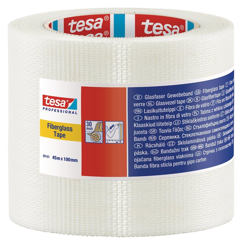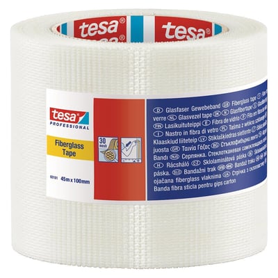Tesa 60101 glasfiber tape med stærkt fladt fiberglasnet til holdbare gips-/gipspladsfuger. God vedhæftning og høj trækkraft giver glatte samlinger.