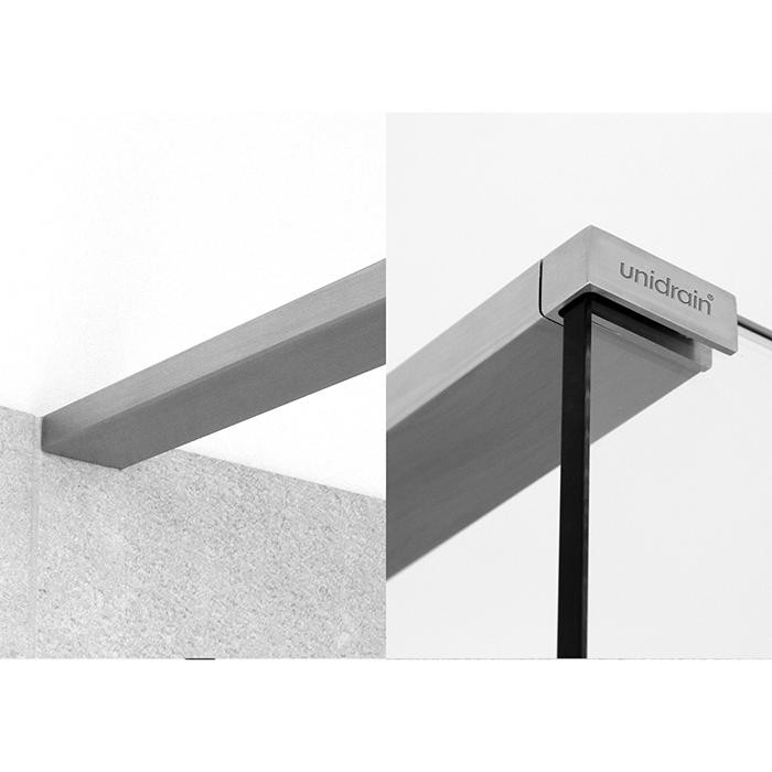 Topstangen fra GlassLine kan anvendes som et diskret designelement eller som en essentiel stabilisering af din brusevæg. Ved brusevægge på 1200 mm anbefales det kraftigt at anvende en topstang for optimal stabilitet og holdbarhed.