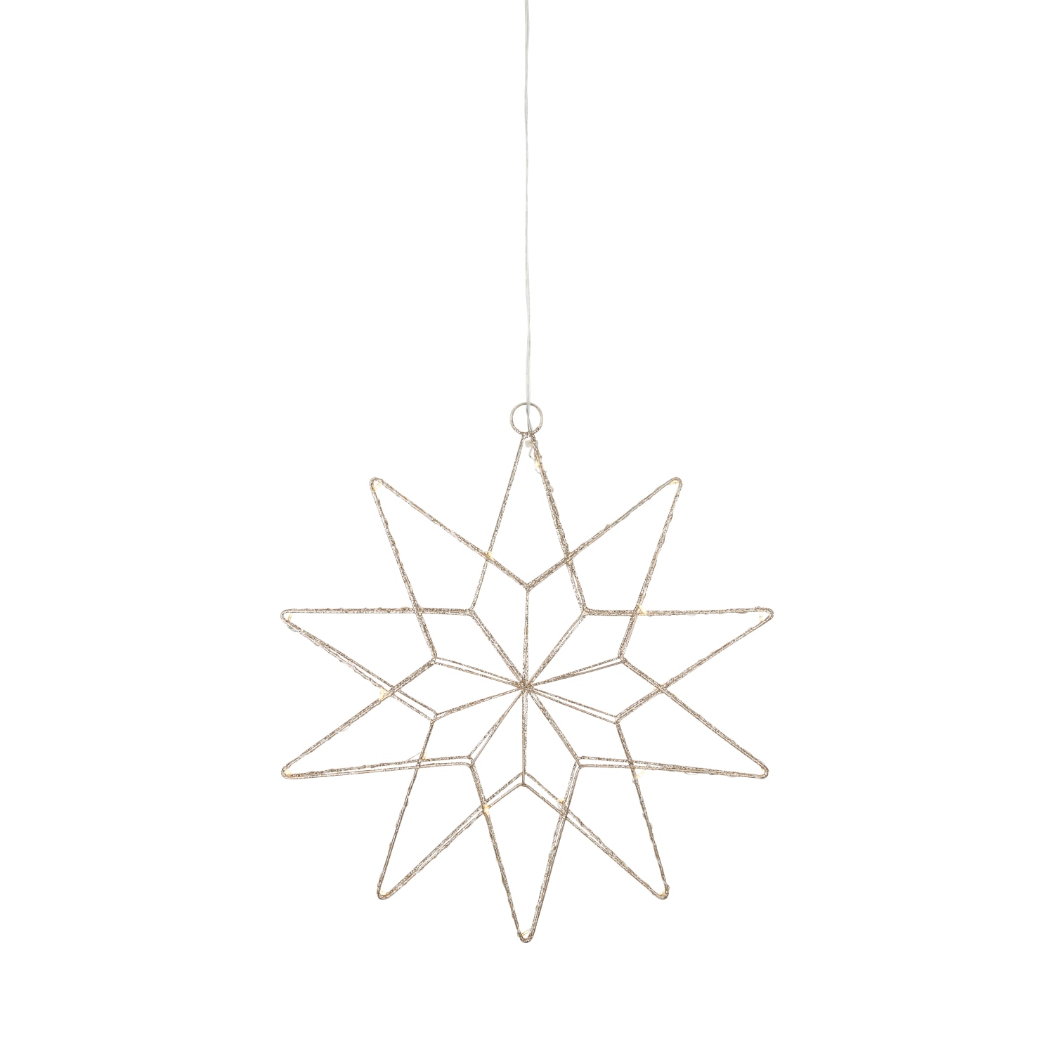 Gleam stjerne pendel i metal med 20 varm hvide LED-lys. Denne dekorative stjerne er ideel til indendørs brug og skaber en hyggelig atmosfære i ethvert rum.
