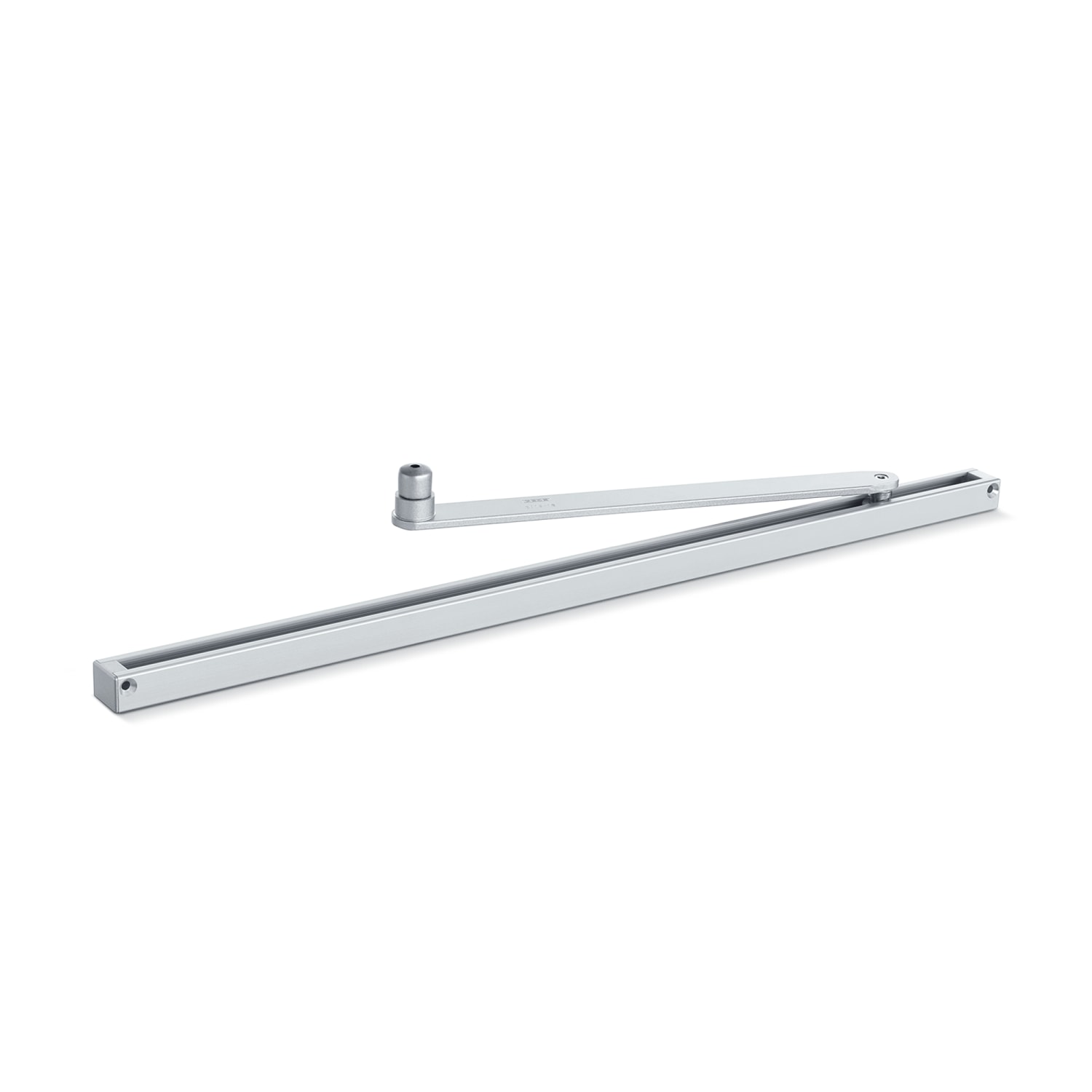 Glideskinnen er en del af Geze Powerturn systemet, en multifunktionel løsning til automatisering af døre. Powerturn er designet til at håndtere store og tunge døre – både enkelt- og dobbeltfløjede – og integreres nemt i eksisterende installationer takket være det diskrete design og en højde på kun 7 cm.