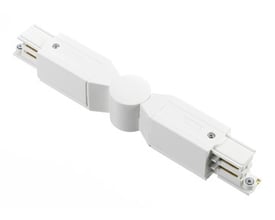 Den klassiske forlænger til 3-faset skinnesystem. Forlængeren skubbes halvvejs ind på den ene skinne, skubbes herefter ind i den anden skinne, så det slutter helt tæt.