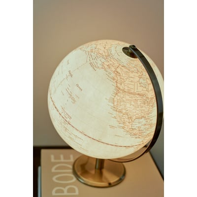 Tilføj et sofistikeret element til dit hjem med denne 25 cm Vintage World Globe Light fra Globus. Den har en mørkegrøn farvetone og robust messingeffekt base. LED lyskilde, USB kabel og strømadapter medfølger.