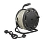 Leveres på en kompakt kabeltromle med støttefod, som gør det nemt at sætte op og rulle ind igen. Du undgår op til flere arbejdslamper med én rulle, og sparer både plads og penge.