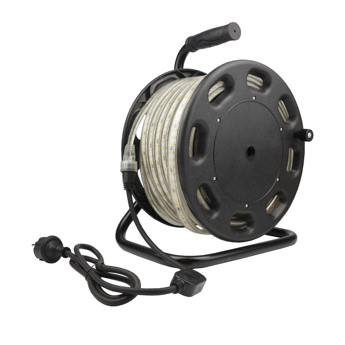 25 meter GO-Starlink LED strip på tromle. Med 1500 lumen pr. meter og 180 LED'er pr. meter. Til arbejdsbelysning på byggepladser, festivaler, tunnelarbejde og belysning af fællesadgangsveje.