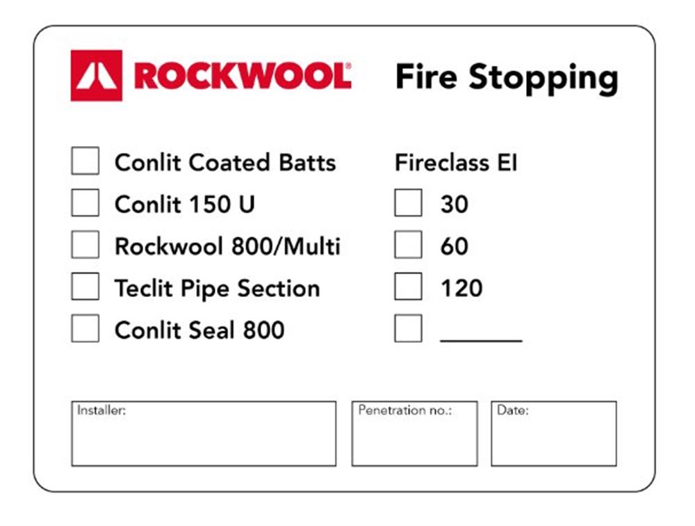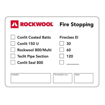 Conlit selvklæbende brandklasse-labels 108 stk i kuvert med størrelse ca. 125x100x5mm.
